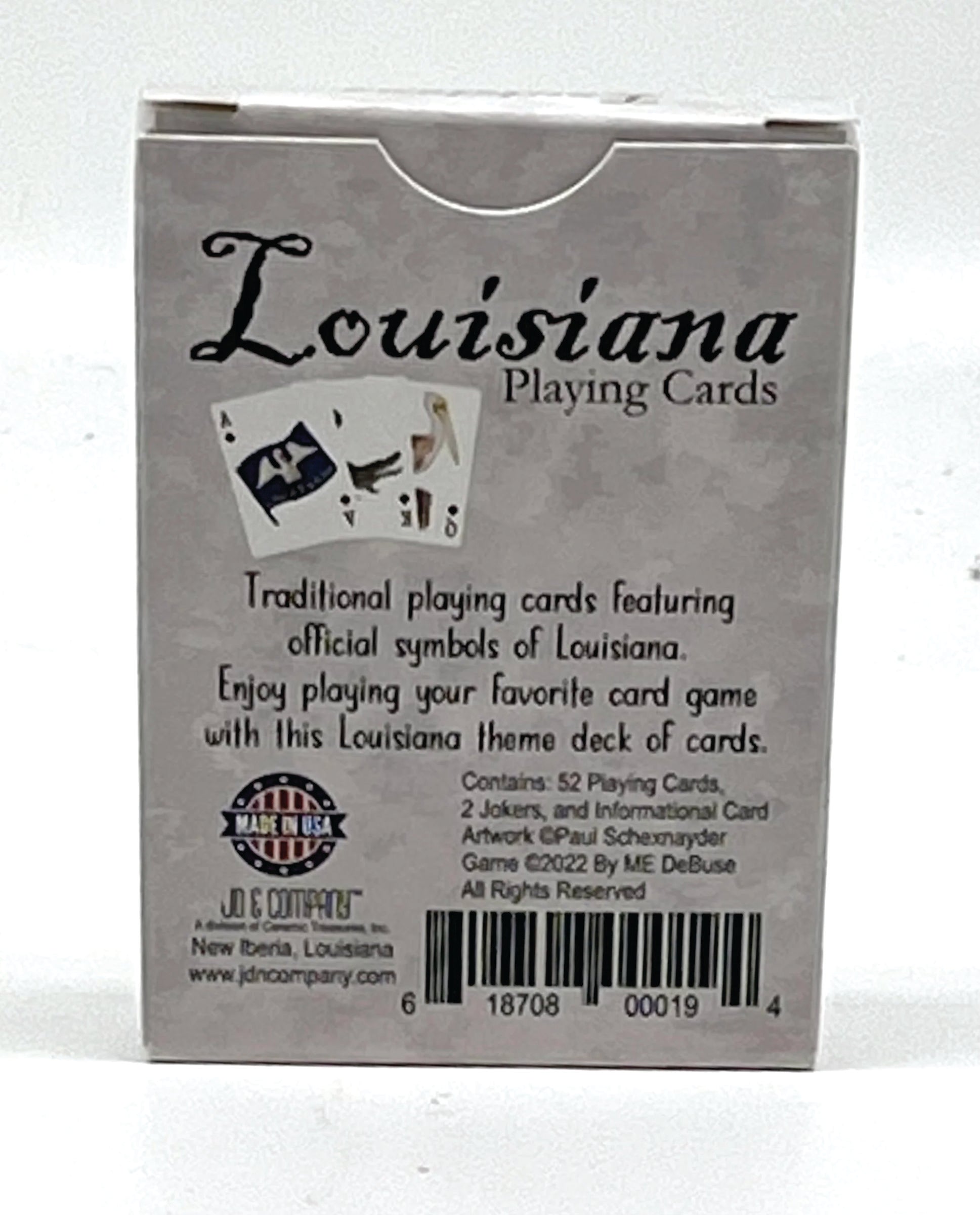 This Louisiana deck of cards is a traditional deck featuring official symbols of Louisiana. Whether you enjoy poker, blackjack, or solitaire, Louisiana playing cards can enhance your gaming experience. They glide smoothly during shuffles and deals, but their texture ensures a firm grip. So, no matter what game you're playing, these cards will perform exceptionally well.